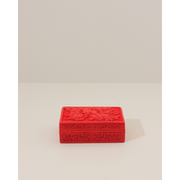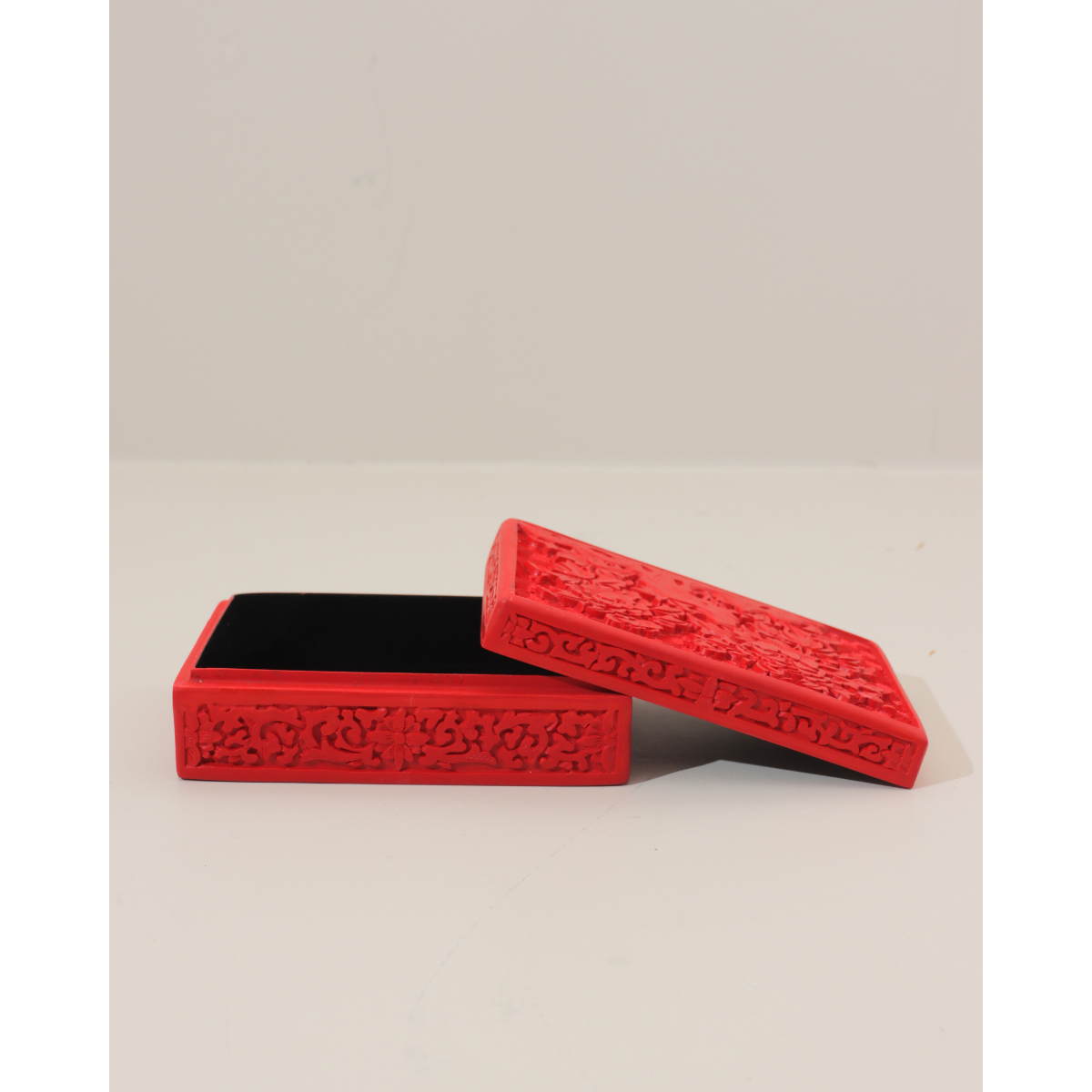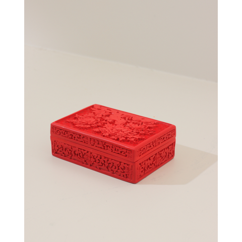 Discover the storied design of this Carved Cinnabar Rectangular Trinket Box, where tradition meets artistry. The vibrant red finish carries centuries of cultural significance, symbolizing prosperity and good fortune in Asian heritage. Each piece is meticulously hand-carved with intricate detail, showcasing the refined craftsmanship passed down through generations. An ideal vessel for storing jewelry, keepsakes, or cherished mementos, this sophisticated trinket box brings both beauty and meaningful symbolism to any collection.