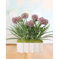 Purple alliums planted in a matte white ceramic wavy vessel. This medium arrangement is perfect for any space or as a gift. All floral arrangements are handmade in house by The Collective Floral Design Team.