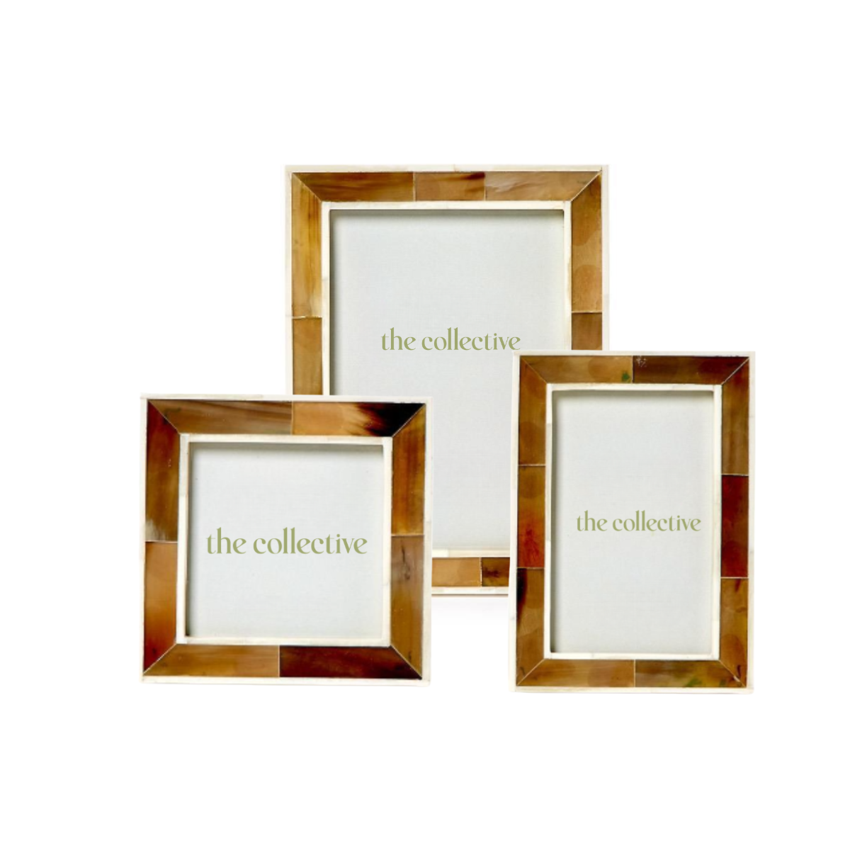 Display your most cherished moments in understated elegance with this picture frame, crafted from richly textured faux horn and resin. Available in three proportions—4x4, 4x6, and 5x7—each frame combines warm, natural tones with a commanding presence that complements any interior aesthetic.