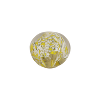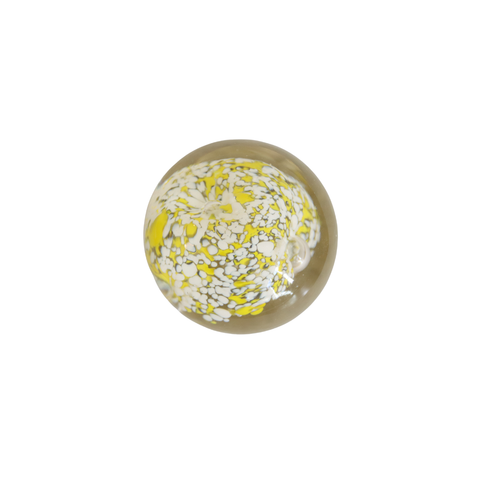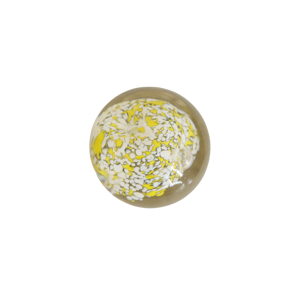 Handblown Yellow & White Art Glass Paperweight featuring playful speckling in the interior detailing. Each piece reflects the organic nature of the glassblowing process, making it a refined desk accessory or collectible display piece.